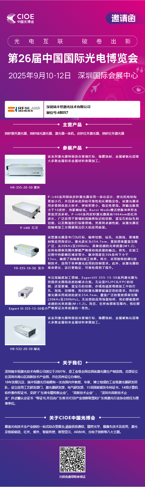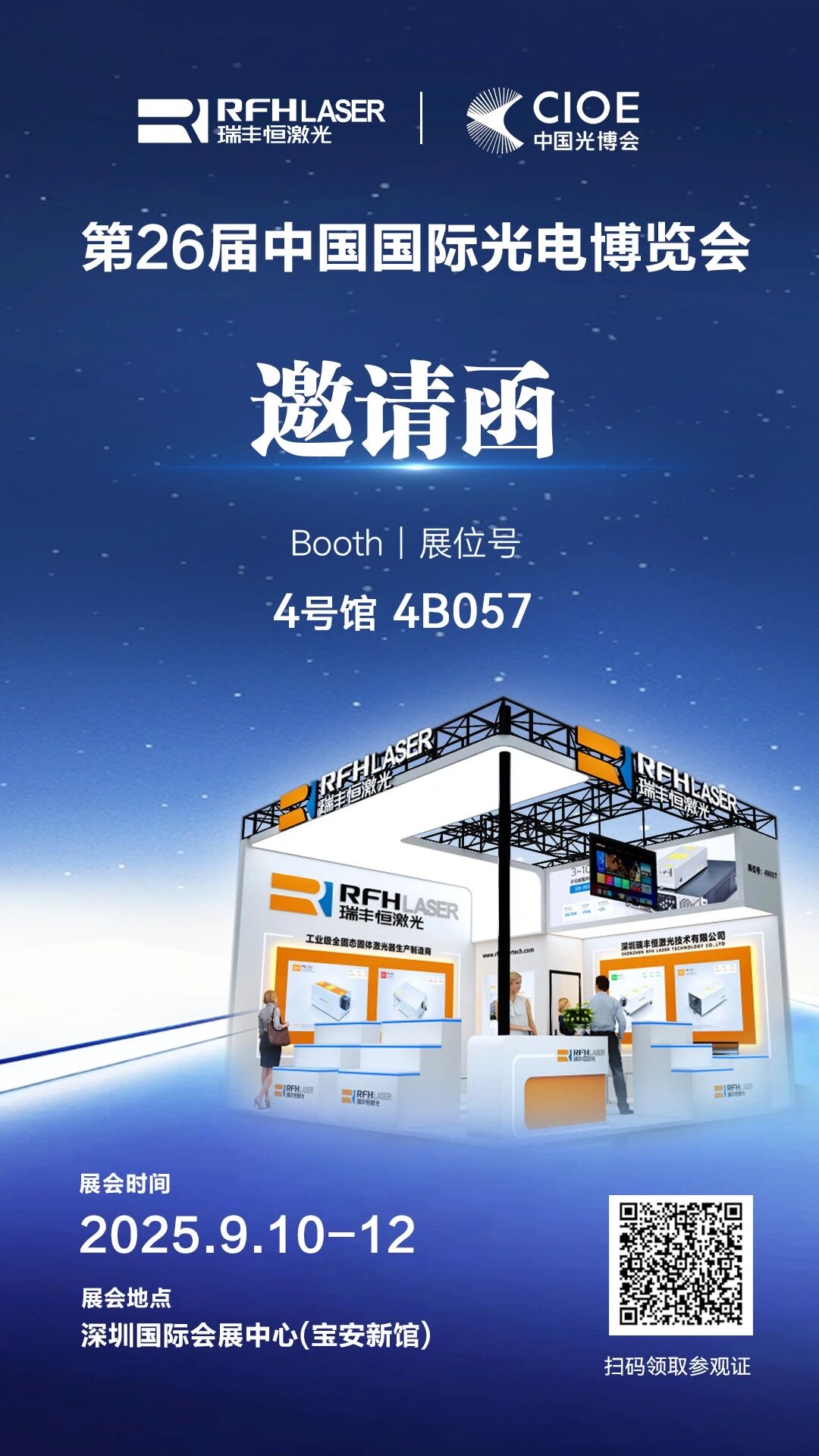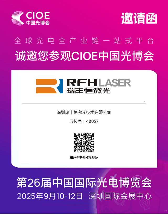 С 10 по 12 сентября 2025 года в Шэньчжэньском всемирном выставочном и конференц-центре стенд RFH Laser станет для вас лучшим местом для ознакомления с новейшими оптоэлектронными технологиями, обсуждения проектов сотрудничества и расширения деловых контактов.